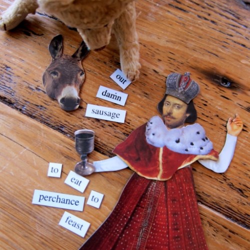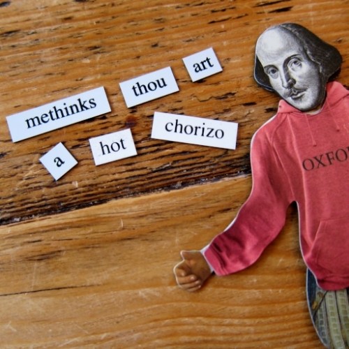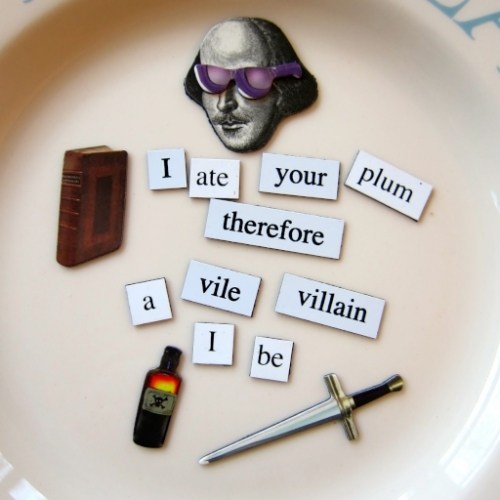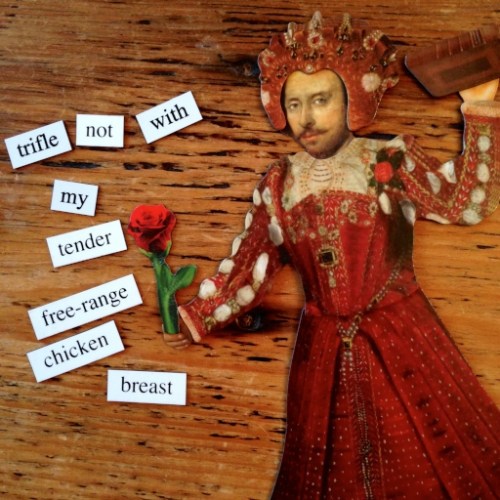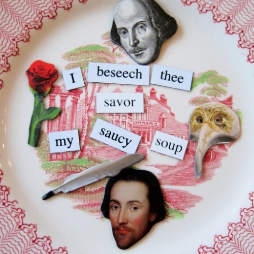 A very fun post from the Bard of Food, The Divine Desdemona-Jama herself. I love your bard dressed as QE, and the magnetic poetry is hilarious. My set doesn’t have “codpiece.” I’m missing out!