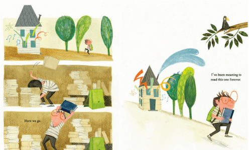 When our young hero settles in to read, the last thing he wants is for some noisy animals to ruin the ending of the story.