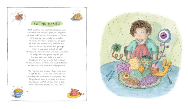 Thought I’d share two poems that soundly rang my bell. You’ll see why (Matt Forrest Esenwine, do you like weird food?). Lick your chops and enjoy!