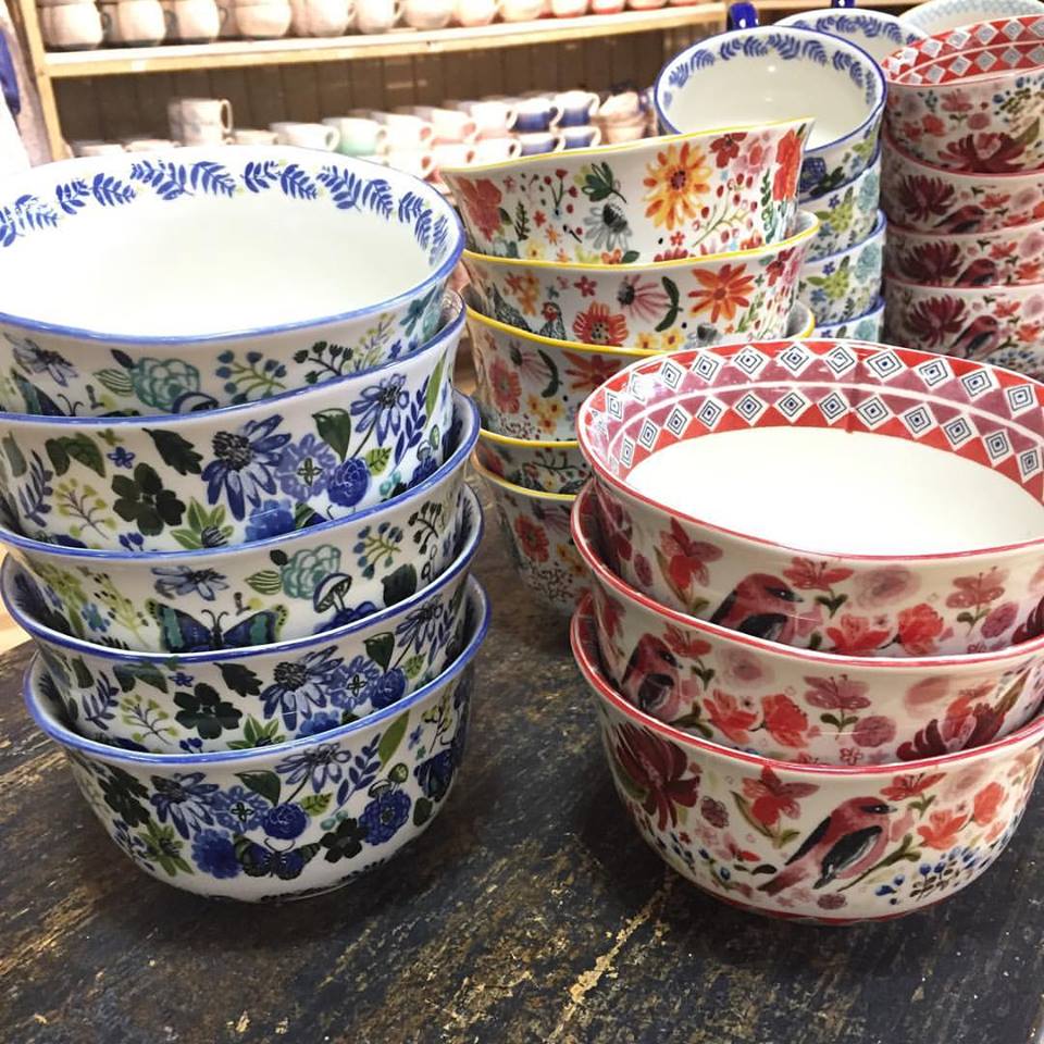 Anthropologie now sells her Wing and Petal design on mugs and bowls,