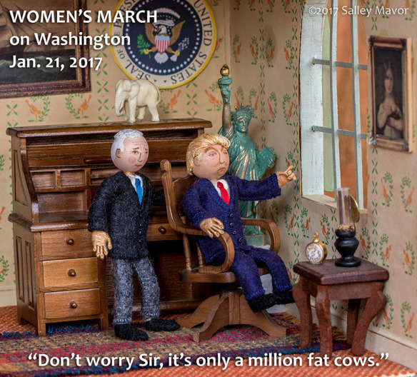 1. Thank goodness for Salley’s political satire. We NEED to find some humor amid all the negativity, and to know that talented artists continue to make and create, when so many others are focused on tearing down and destroying.