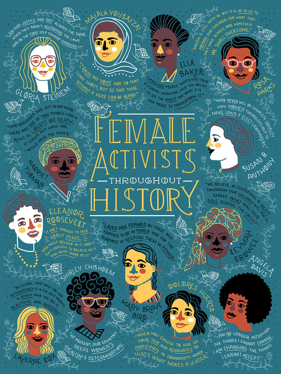 3. Have you seen this cool new poster by Rachel Ignotofsky? Female Activists Throughout History!! Look at the quotes from Malala, Gloria Steinem, Eleanor Roosevelt, Rosa Parks, and others. 🙂