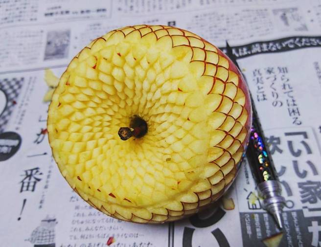 7. Hmmm, next time you pick up an apple, banana, or carrot, instead of merely peeling it, why not carve it into a work of art? Japanese artist Gaku seems to enjoy doing just that.