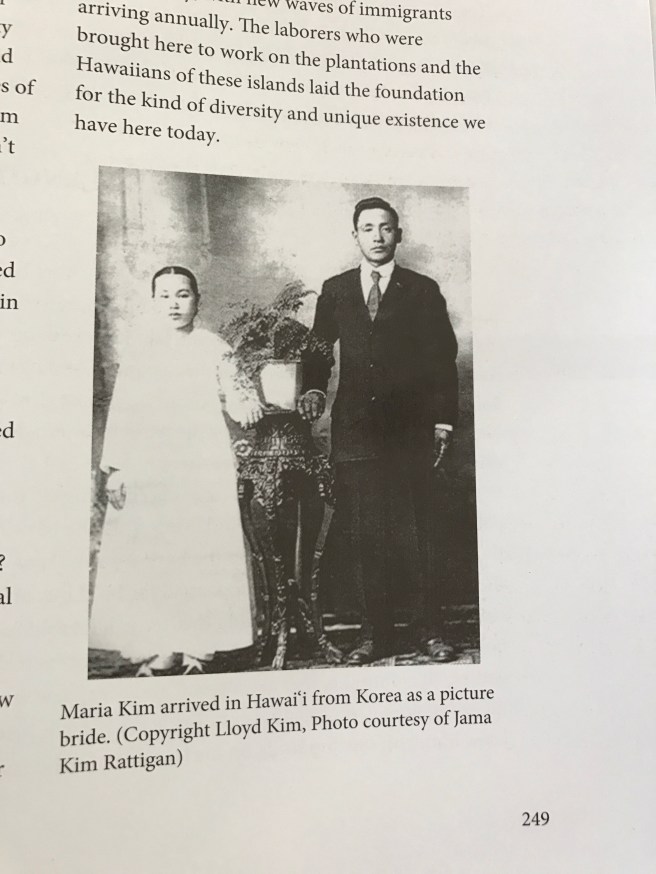 5. On a personal note, a little bit about how an old wedding photo of my paternal grandparents ended up in a high school textbook. Several years ago, I was contacted by the University of Hawai’i Curriculum and Research Development Group (CRDG). They had seen my grandparents’ wedding photo here at Alphabet Soup, in a post I had written about my grandmother being a picture bride from Korea. Could I grant them permission to include it in a new edition of The History of Hawai’i, a textbook used in public schools throughout the state?