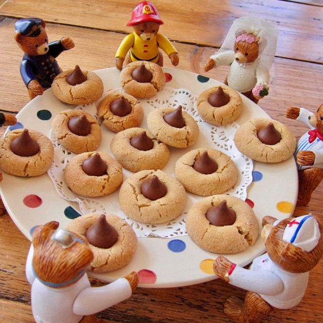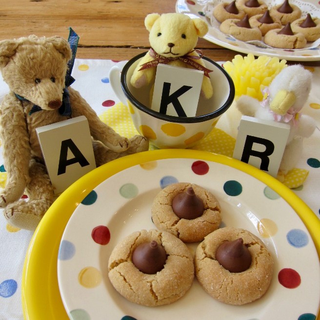 I think your granddaughters (if they’re not allergic to peanuts) would like the cookies. Putting on the kisses is the fun part.