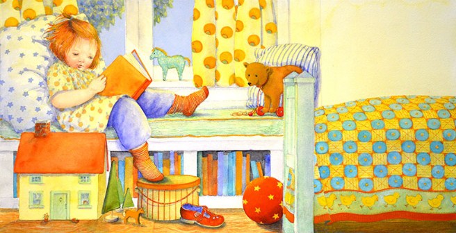 About twenty-five years ago, I purchased a copy of Baby Bear’s Bedtime Book, written by Jane Yolen and illustrated by Jane Dyer. As an avid teddy bear collector, I was mad for bear books and instantly fell in love with Goldie and Baby Bear. There was such warmth in Jane Dyer’s pictures, a quaint old-fashioned charm and innocence that made me feel safe and comforted.