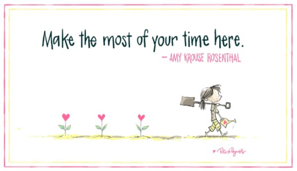 ♥ Purchase a “Make the Most of Your Time Here” 11″ x 17″ poster, created by Peter H. Reynolds (who illustrated two of Amy’s picture books, Plant a Kiss and Little Miss, Big Sis). 100% of the proceeds will benefit the AKR Yellow Umbrella Foundation, which supports ovarian cancer research and children’s literacy initiatives.
