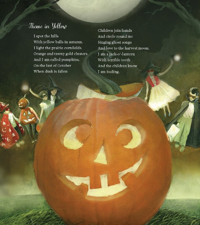 What an incredibly beautiful book! I especially loved the page you shared that featured Theme in Yellow. I’m sucker for fall and pumpkins and the illustration is the perfect pairing for the poem!
