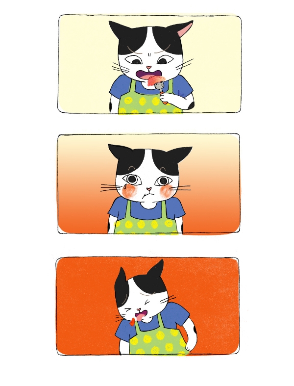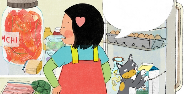To make matters worse, her two brothers call her a baby and refuse to play with her because she won’t eat kimchi. Yoomi’s determined to show them she’s definitely NOT a baby, and experiments with different ways of making kimchi more palatable. On a chocolate chip cookie or a slice of pizza? What about hiding it in some ice cream? Well, no.
