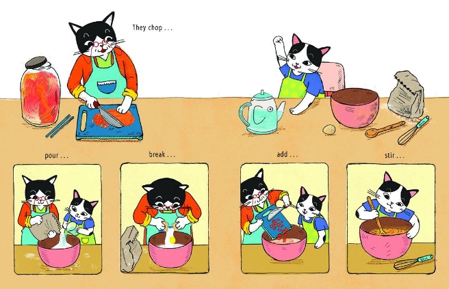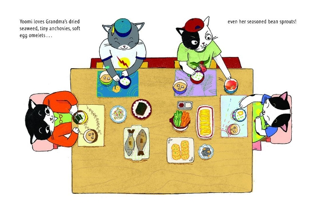 Luckily Grandma has a plan. Together, they chop, pour, add, and stir the ingredients for . . .  a big kimchi pancake! Its delicious aroma lures Yoomi’s brothers right to the kitchen. Will Yoomi like the kimchi pancake and prove that she’s a big girl after all?