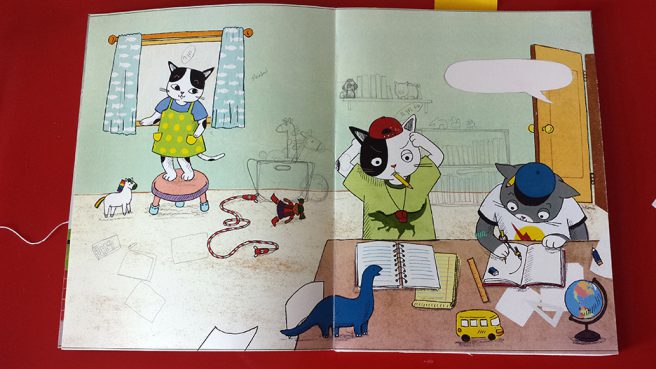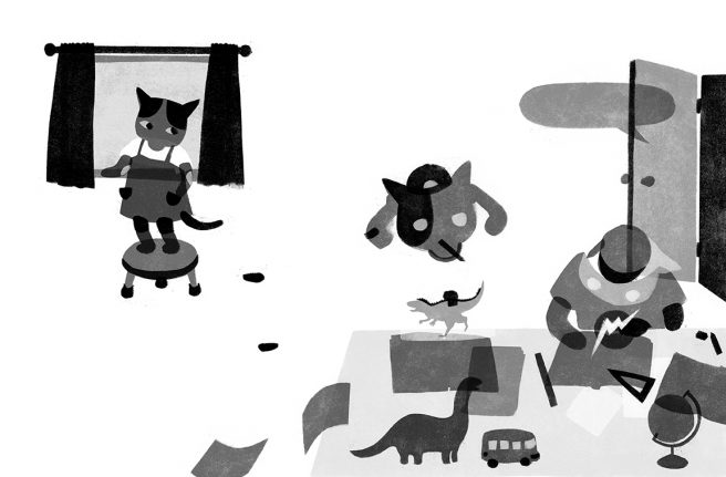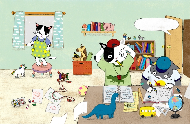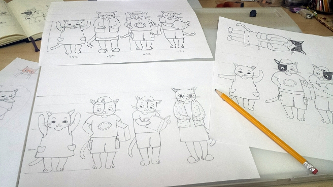 Both of your published picture books have cat characters. Do you prefer drawing animals rather than people? If so, why?