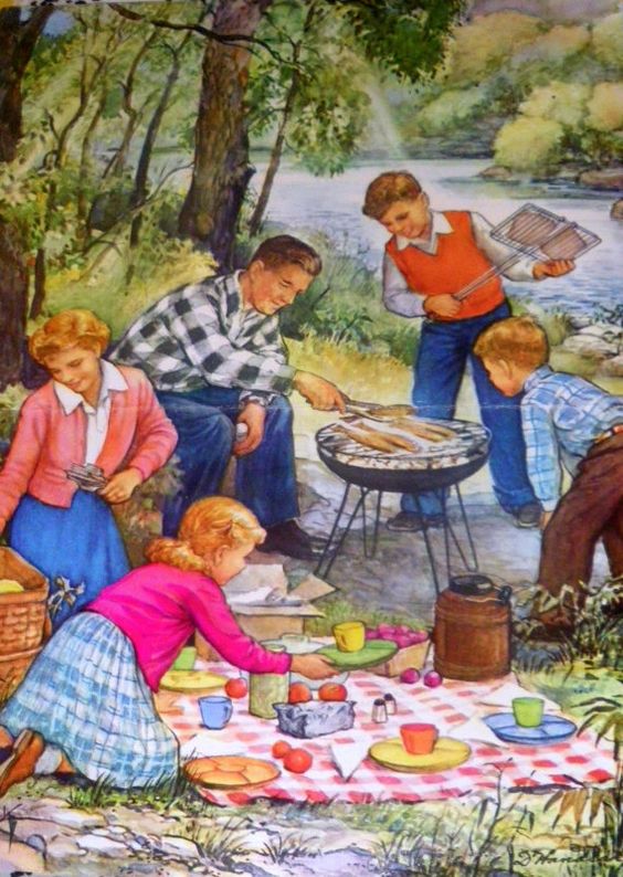The picnic! As a child it was baloney sandwiches with mustard and lemonade. It was in the park, the backyard, or at the beach. I still like to do it with grandkids as simple as it might be. I love eating outdoors in the warm weather. I think I picnic alone most warm mornings with coffee, a piece of cheese and dill crackers!! Long live the picnic. There are picnics in heaven, right?!