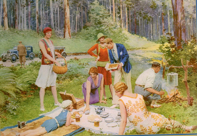 I love this post. Your collection of paintings and photos would make a book all on its own. I would like to go on the record as being fully pro-picnic. But how true it is that so many things can ruin one. I never really thought about a picnic as a triumph of hope before. Must go on more picnics.