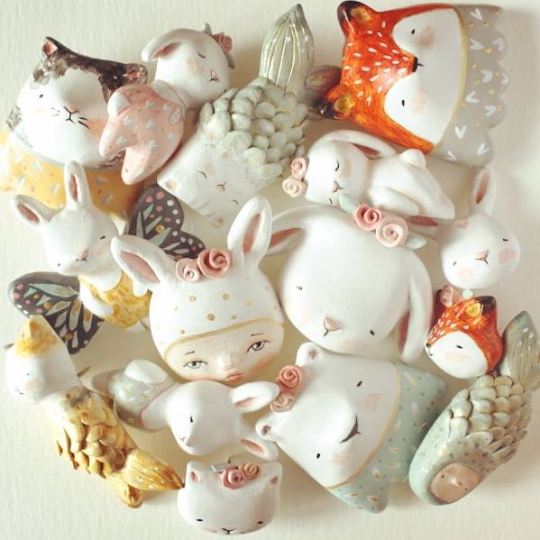 5. Speaking of gifts, here’s a lovely gift idea for a special someone. Check out Flora Panichelli’s Sweet Bestiary for an adorable selection of brooches, figurines, art dolls and puppets. She is partial to bunnies and foxes, some living in tiny teacups!
