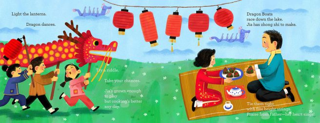 Yum! Everything looks and sounds delicious here Jama, including the book! The book is lively, colorful, and the illustrator has done a marvelous job of capturing this little, spirited girl, Jia. What a story to share and unfold, thanks for giving us a glimpse into this special book. We go to Chinatown in Chicago, for dim sung. I also made pot stickers from scratch a long time ago.