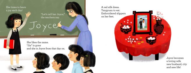 Undeterred, Jia “practices from spring to fall.” She makes not only dumplings, but noodles and sweet rice balls too. Come New Year’s, Jia proudly shows Cook what she can do and he is duly impressed. As she grows up, Jia retains her interest in cooking, garnering praise from her father for her zongzi. In school, teachers begin calling her “Joyce.”