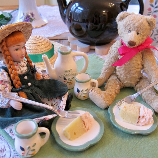 Another wonderful post! I don’t know what to gush about first, that cake and the rest of the delicious-looking food, the videos, your beautiful tea settings…. I’ve recently been watching the 1990s mini-series of Avonlea and also of Emily of New Moon–both well done. 🙂