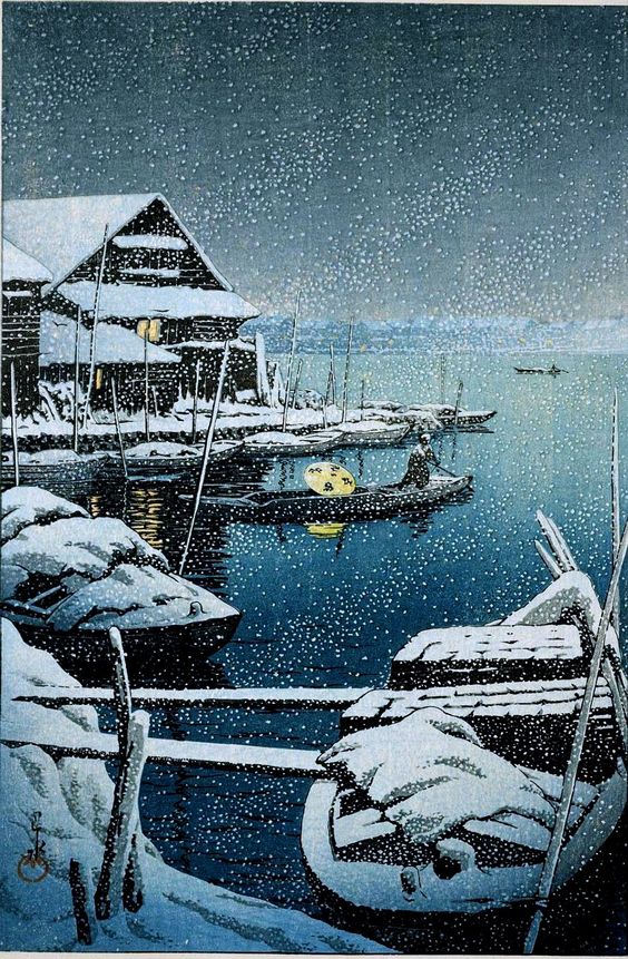 Since this is my THINK BLUE year, today I’m sharing some of my favorite Hasui prints with blue as the predominant color. Bask in the serenity of his world. Deep breaths . . .