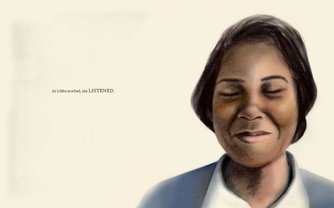 In Libba: The Magnificent Musical Life of Elizabeth Cotten by singer-songwriter Laura Veirs and debut illustrator Tatyana Fazlalizadeh (Chronicle Books, 2018), we see how Libba ultimately accomplished “what she was born to do” despite the many ups and downs in her life.
