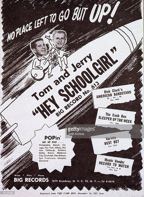 Rejected but not defeated, they came up with another song after hearing the Everly Brothers. They knew it was something different and special, so they scraped together seven dollars to make a demo in a professional studio. By chance, a record producer heard them singing from a hallway and signed them on the spot. Just 15, they called themselves “Tom and Jerry,” and within a few months, their song, “Hey Schoolgirl,” was on the radio and skyrocketed to the top ten in New York. They were rockabilly stars with a hit record!