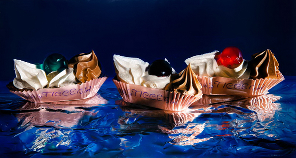 A native of Turin, Benedicenti developed his own style of “realismo extremo,” or hyper photo-realism, featuring Italian pastries as his primary subject.