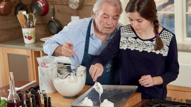 For both Shorey and her mom, there was no such thing as “kid’s food.” They learned to eat what the grown-ups were eating, subsequently developing a gourmand’s palate. This, along with Jacques’s longstanding philosophy that “great meals are always the ones that are shared with family and friends,” form the basis for A Grandfather’s Lessons: In the Kitchen with Shorey (Houghton Mifflin Harcourt, 2017).
