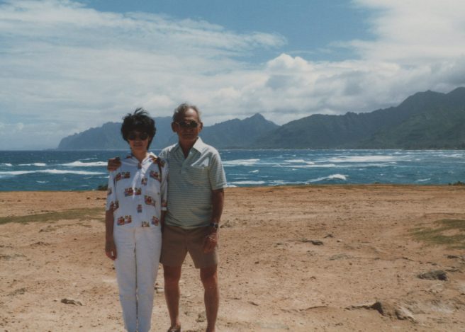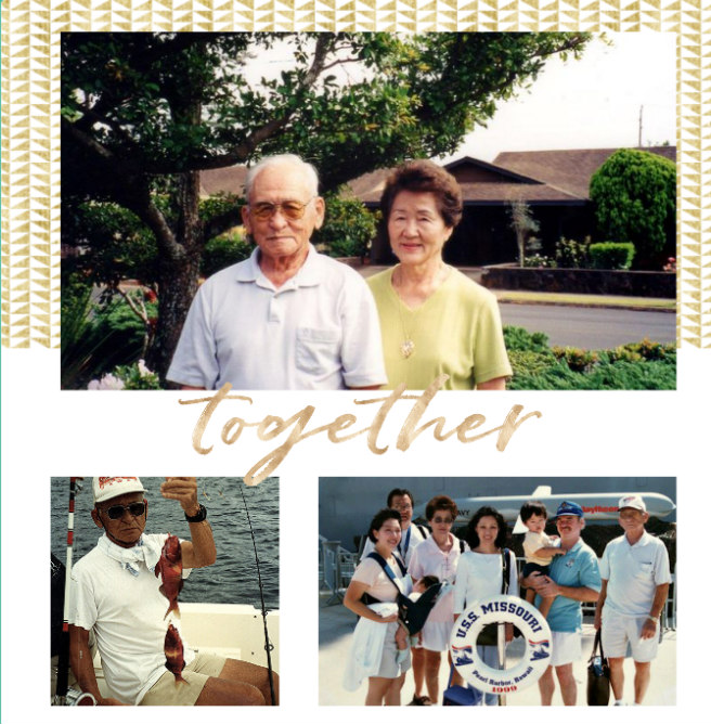 When he was on his computer, Dad spent a lot of time looking at old family photos. So I thought of making a photobook — memories of favorite times Len and I spent with him. As the daughter who lived “away,” these times were actually trips we made to Hawai’i and trips Dad and Mom made to England and Virginia to visit us.