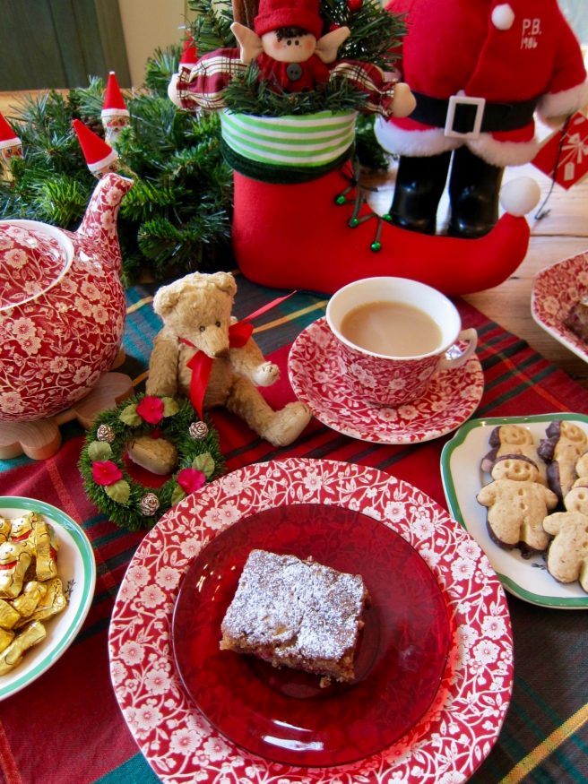 The red dishes are Red Calico pattern by Burleigh (England). I try to add a piece or two a year to my collection. 🙂
