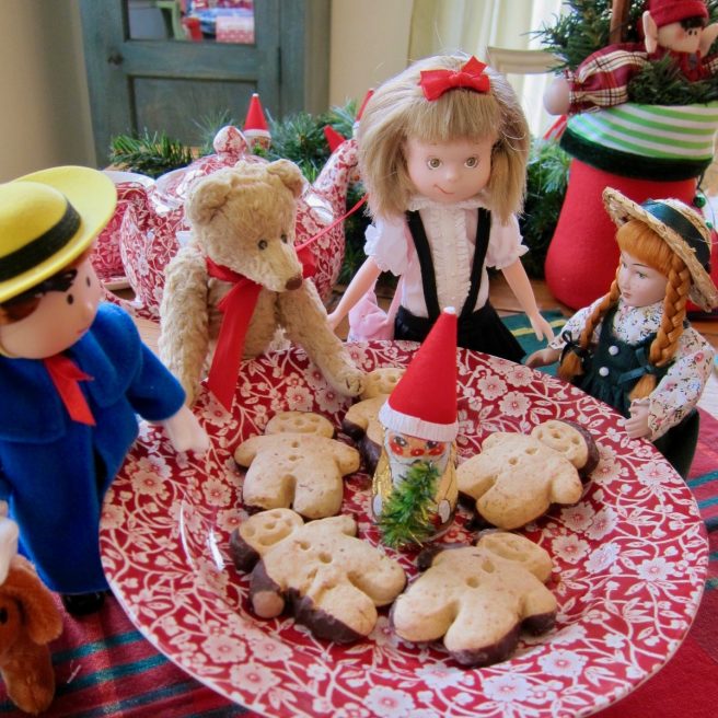 That’s a beautiful blog post. I love your collection of memories of children’s Christmas stories, your recipes, and your photos of toy figures inspecting the cookies! Your photo book sounds delightful too.