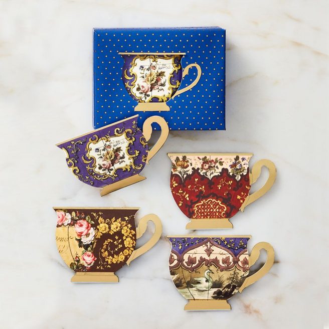 Evoking the charm and romance of 19th-century France, our teacup notecards are adapted from details of an album of porcelain designs. The album, by an unknown artist, features 20 pages of designs for teacups, teapots, sugar bowls, and creamers. The whimsical notecards included here are sure to bring a pinch of delight to daily correspondence.