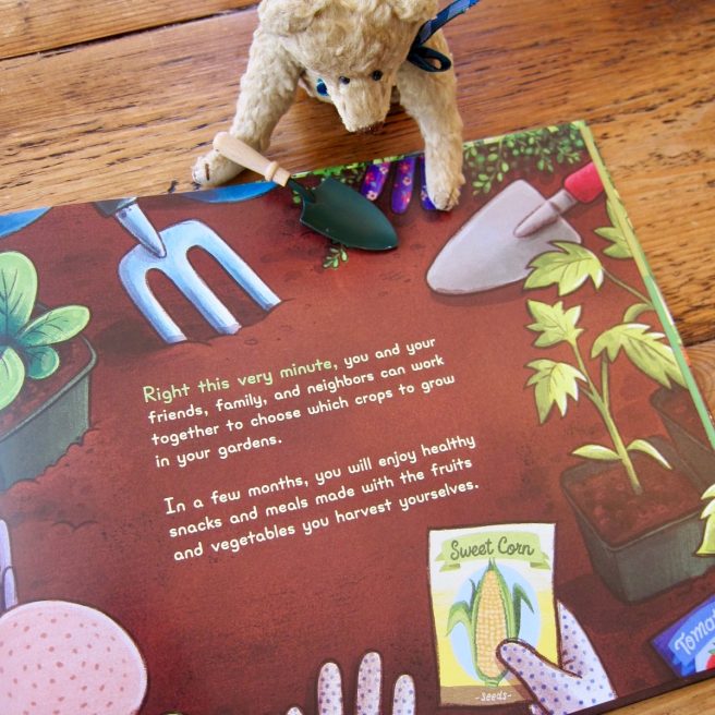 The book closes with an appealing suggestion for those who might be interested in growing their own food. Why not start a community garden with family, friends or neighbors? And don’t rule out the possibility of someday becoming a farmer yourself. 🙂