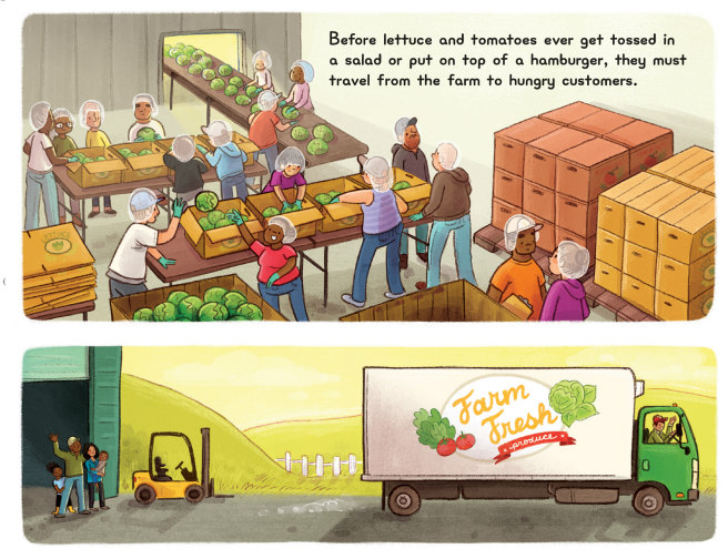 This is so cool. The illustrations are fabulous, but I really, really like the lessons of how we’re all interconnected and that our food doesn’t come from a store but from the land — and I also like the idea of promoting the family farm. AND I love that there are educational resources too. Great for exploring more with curious kids.