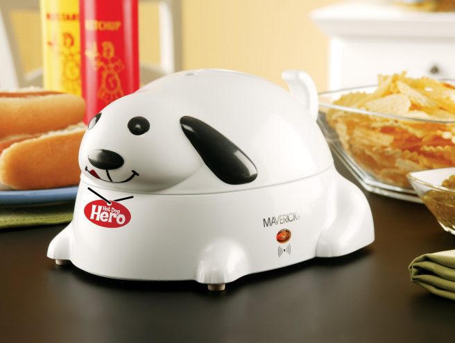 Though grilling is our cooking method of choice, this Maverick HC-01 Hero Electric Hot Dog Steamer is awfully cute. Just fill the base with water and you can steam up to 6 hotdogs at a time in under 9 minutes. Auto shut-off guarantees you don’t overcook them, and best of all — when your dogs are done, the unit barks! 🙂