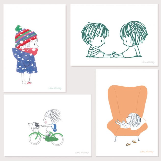Jane lives and works in Hove, in the South Coast of England, (just west of Brighton). She studied graphic design at Kingston University and then worked for several design agencies in London and Hong Kong before setting her sights on illustration.