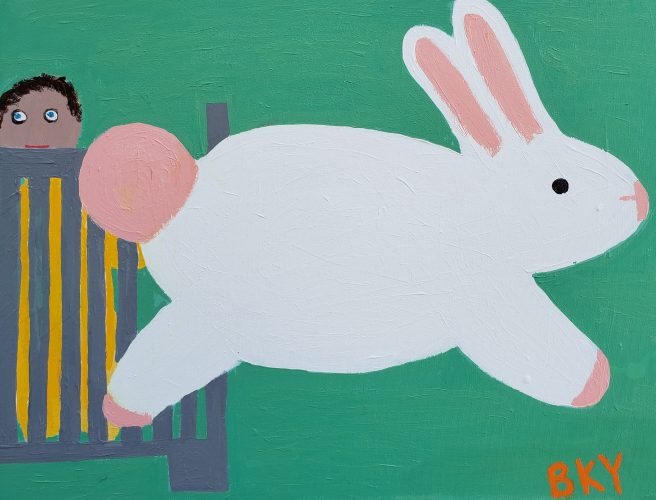 Each of Barbara’s charming acrylics tells a bit of a story, and are perfect for a child’s room. Of course whimsically-minded adults may very well wish to add one of these delightful pieces to their private collections. 🙂