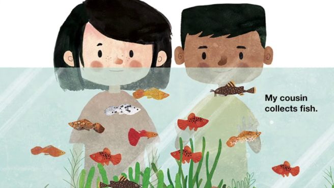 I love “My Brothers and Their Baseball Cards,” a ‘pitch perfect’ two-voice poem with lively, enthusiastic dialogue between two avid collectors. Or what about the ingenious, “Auntie Kate’s Vanity PL8TS”? Over-the-top puzzle solving fun. “Asher’s Aquariums” is a deftly crafted counting poem, and in “The Gist of Collecting,” Michelle’s writing chops are on full display with the names of scientific collectors (never thought I’d see “dipterologist” in a rhyming poem!).