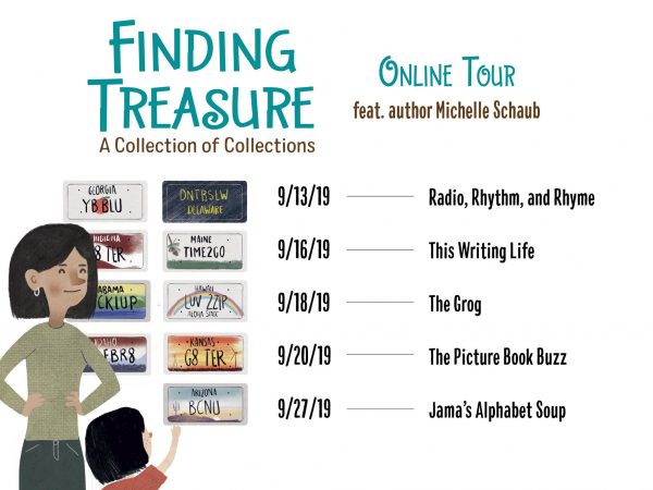 The publisher is generously donating a copy for one lucky Alphabet Soup reader. For a chance to win, please leave a comment at this post telling us what you collect (or if you don’t have a collection, describe one you’ve seen and like). Deadline is midnight (EST), Wednesday, October 2, 2019. You may also enter by sending an email with TREASURE in the subject line to: readermail (at) jamakimrattigan (dot) com. Giveaway open to residents of the U.S. and Canada only, please. Good Luck!
