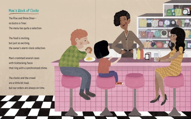 Thanks to Carmen Saldaña’s appealing digital art, the young narrator brims with personality, and she’s created wonderful contexts for each poem that showcase the girl’s relationships with family and friends. We’re able to get a feel for the young girl’s home and neighborhood, which illuminates the narrative arc of the poems as a whole.