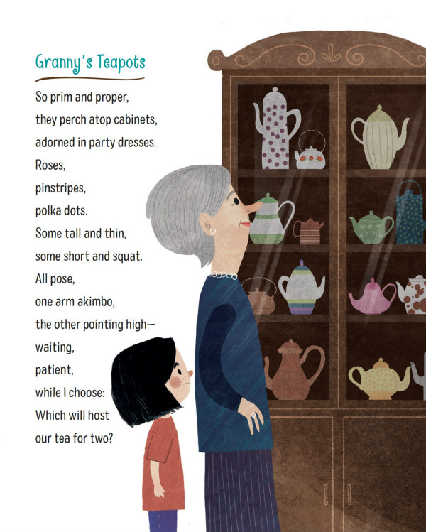 Michelle proves she’s an ardent collector of words, images, and poetic forms in this charming book. Her clever, inventive, mostly rhyming verses are fun to read aloud and will get kids excited not only about poetry but about starting their own collections.