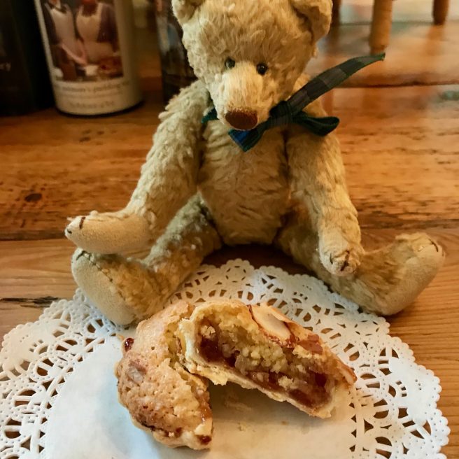 These yummy bites are a nice addition to a tea tray — they taste like part cookie, part fruit tart. And they’re cute. Mr Cornelius gobbled up three on the spot. 🙂
