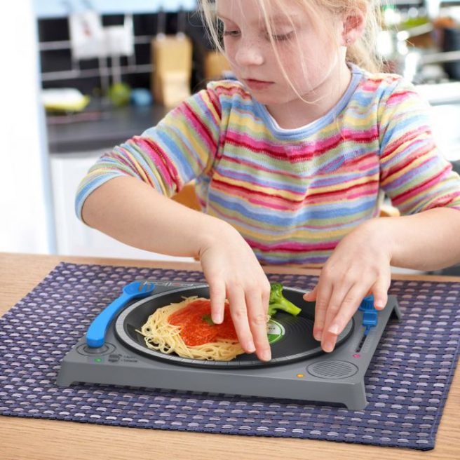 Makes life more interesting, right? I’ve always wanted my food to spin around a turntable. And those fried chicken erasers aren’t even greasy. 😀
