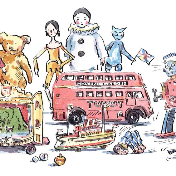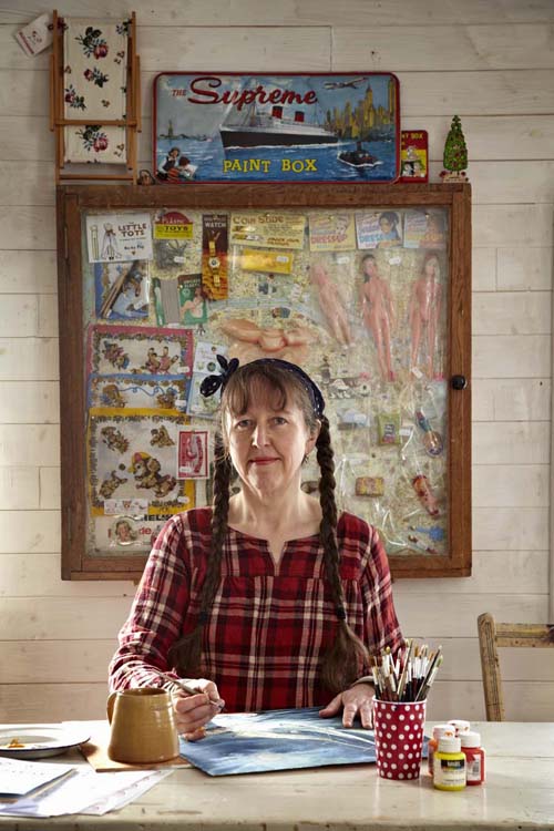 She lives in Hastings, a seaside town/fishing port on the southern coast of England. It looks like she collects vintage toys and ephemera. My kind of person!