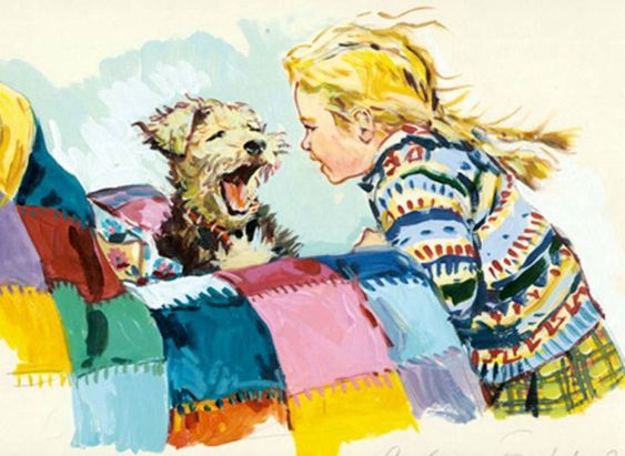 Her art is beautiful, and I agree–it definitely has a classic and nostalgic quality. I love the dogs 🙂