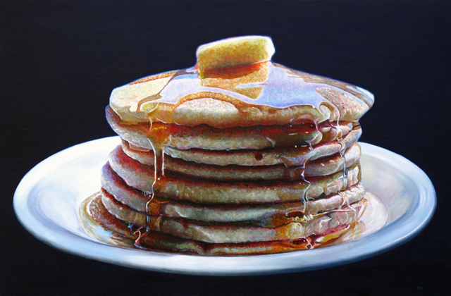 adorned by cold chunks of margarine and Log Cabin Syrup.
