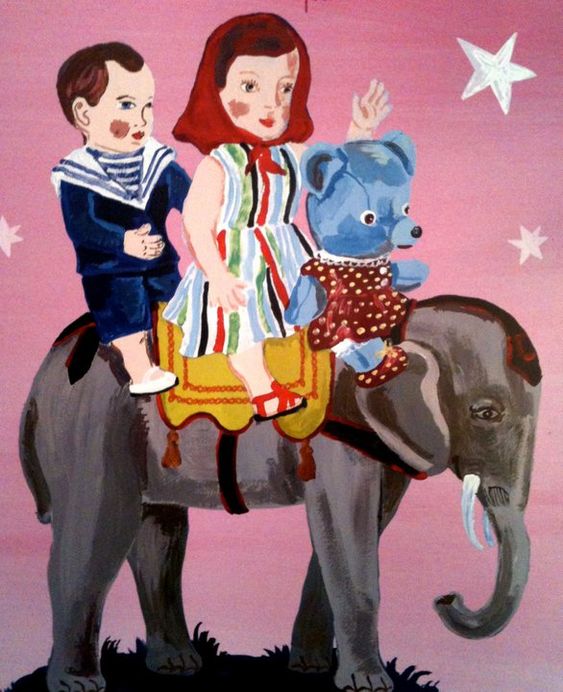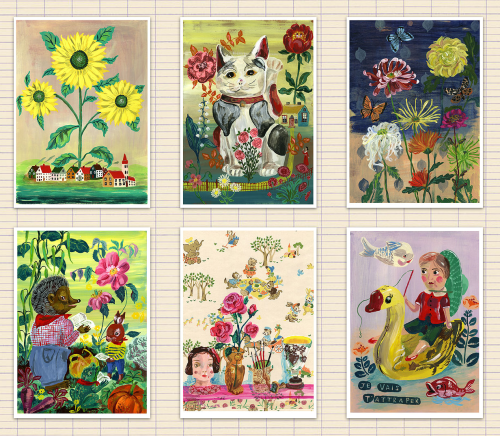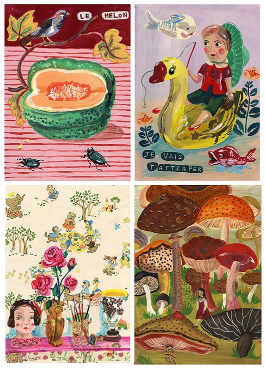 She loves “the vibrations of colors” and always tries to convey strong emotions in her pictures. One could describe her work as both nostalgic and kitsch. I would add poetic, romantic, fanciful, sometimes mysterious/strange, undoubtedly original. When you see a Nathalie Lété piece, you know it immediately.