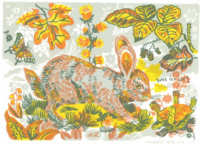 Nathalie is a Paris native, the only child of a German mother and Chinese father. She credits her mother with reading extensively to her as she grew up, claiming that the themes she loved from childhood — flowers, animals, textile patterns, fairy tales, toys, folk art — are what continue to inspire her work today. She loved the children’s book illustrations she saw and spent lots of alone time drawing and living in her imagined world.