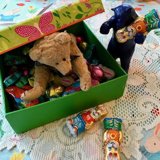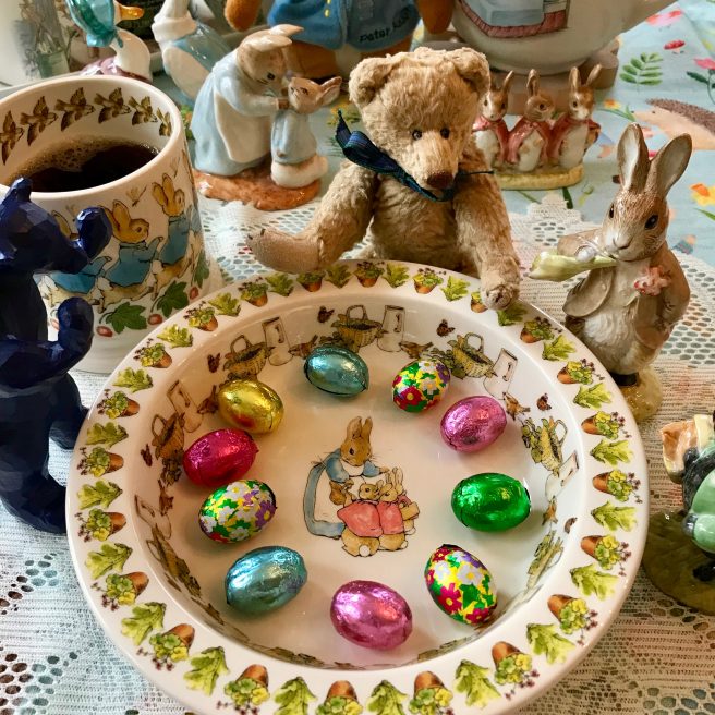 Mr Cornelius, Blue Bear, Chef Rotund, Peter Rabbit and all his friends devoured the cake and sipped many cups of tea. This definitely put them in an Easter-y mood, which called for lots of chocolate, jelly beans, and robin’s eggs.