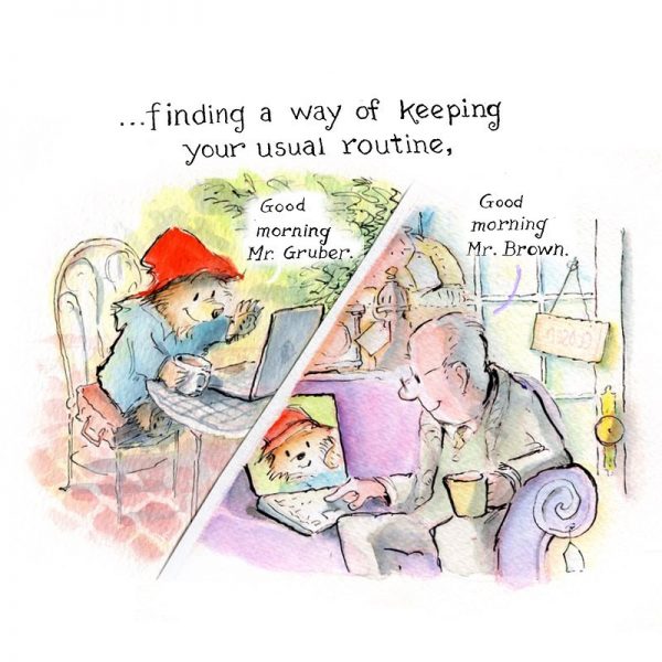 4. Hooray! Let’s hear it for Paddington! Yes, he, too, is on board with helping to flatten the curve. Check out this fabulous sequence created by his illustrator R.W. Alley: