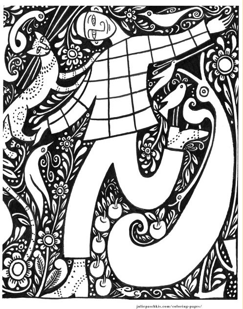 6. Ta da! Precisely what we need to keep us calm, focused and occupied: Coloring Pages! Julie Paschkis is sharing free downloadable coloring pages at her website.