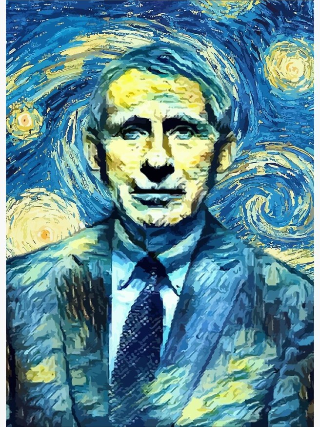 Also cool: Dr. Fauci has inspired some wonderful art, and we can also “get our Fauci on” with Dr. Fauci prayer candles, cocktails, mugs, t-shirts, socks, donuts, cupcakes, candy, bobbleheads, and plush dolls.